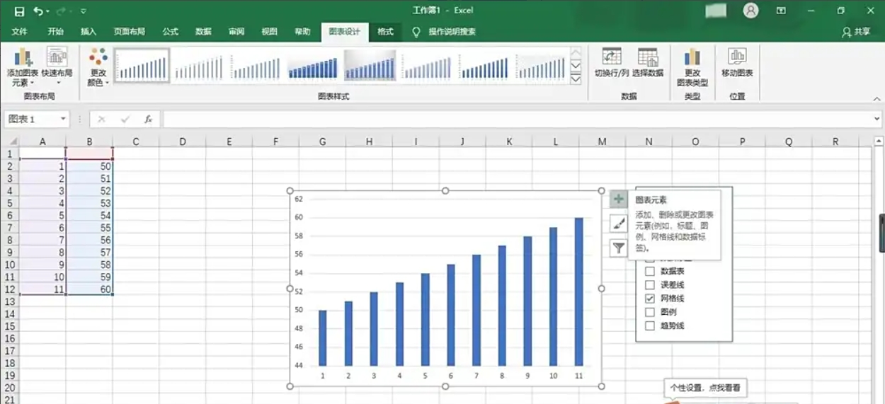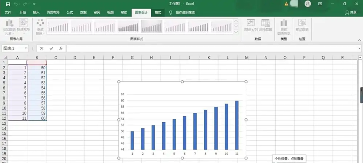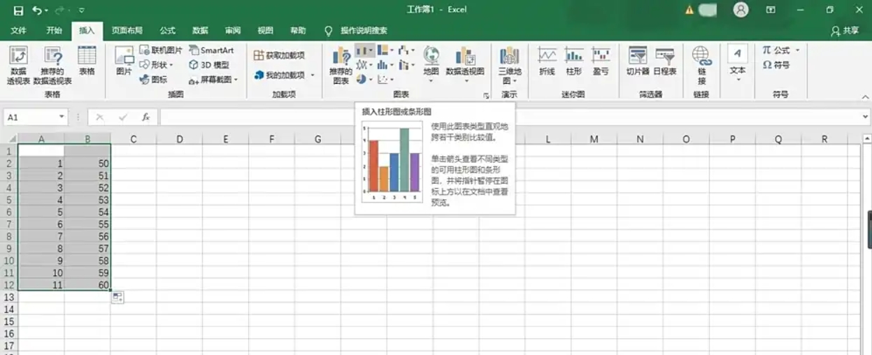 4、插入图表:此时,簇状柱形图已插入到工作表中。