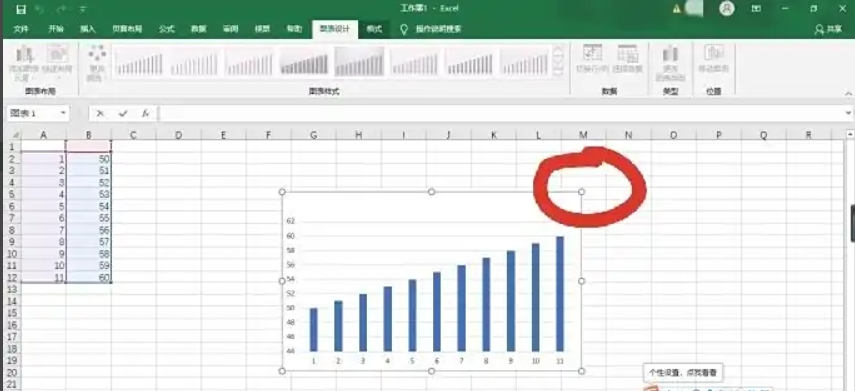 5、调整图表大小:选中图表,拖动8个控制点可以调整图表大小。