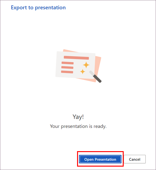 使用“导出”命令并选择“导出到 PowerPoint 演示文稿”时,Word基于文档的所有汇总部分创建演示文稿。