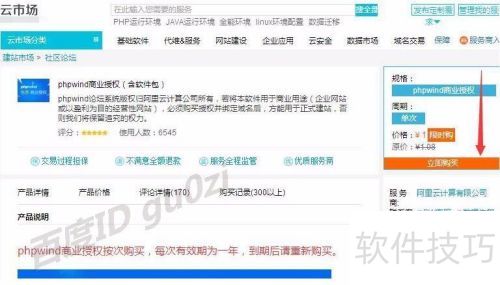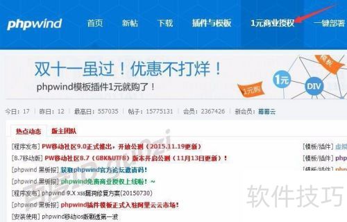 2、 访问phpwind官网,选择1元商业授权入口。