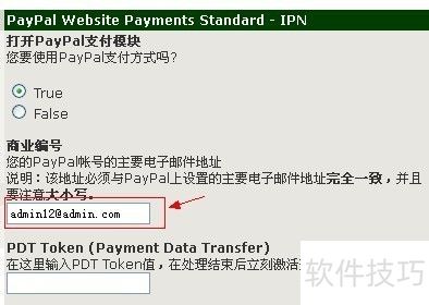 1、 安装完成后,要添加贝宝(payp@l)账号的主要邮件地址,即你申请贝宝账号时的那个地址。若需填写PDT Token(支付数据传输),可从已注册的贝宝账号中获取。PDT Token的值能在处理结束后马上激活交易。