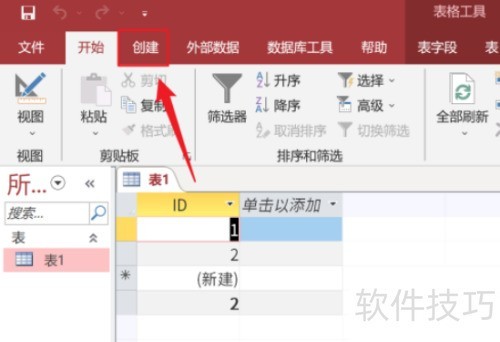 1、 首先,打开Access软件,进入主界面后,点击顶部的创建按钮。