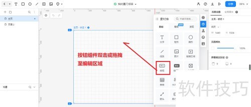 2、 将按钮组件双击或拖拽到编辑区域中。