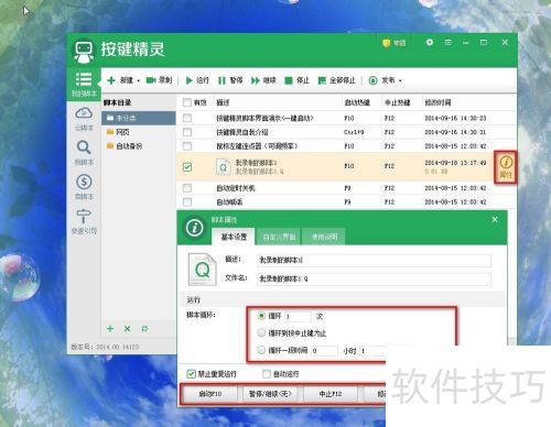 7、 点击右侧红色叹号,于脚本属性菜单里设置细节。