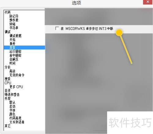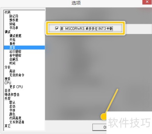 2、 在选项界面中,选中无效或特权指令复选框。