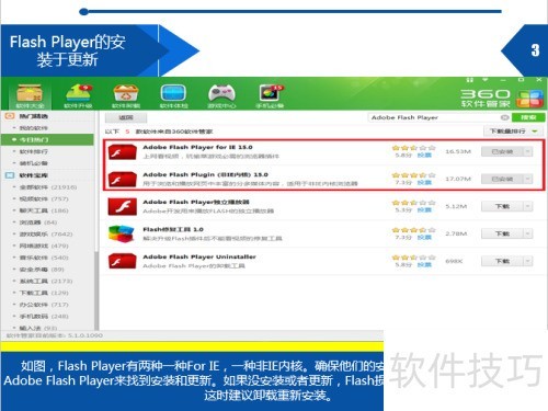 5、 Flash Player有两类版本:适用于IE内核和非IE内核的。为保证正常使用,需确认两者均已正确安装并保持更新。可通过搜索Adobe Flash Player进行下载与更新。若未安装、未更新或Flash损坏,可能会导致视频无法播放,建议此时卸载后重新安装以解决问题。