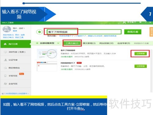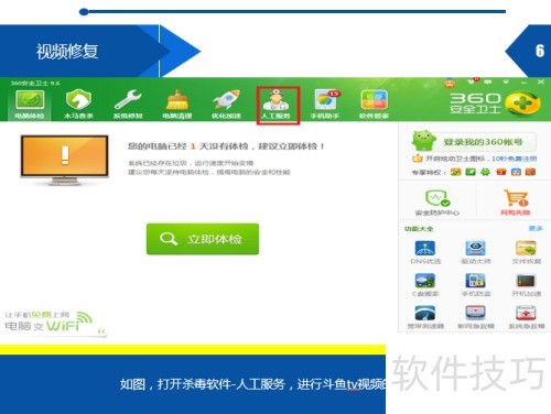11、 请打开杀毒软件中的人工服务功能,按照指引修复斗鱼TV视频问题。