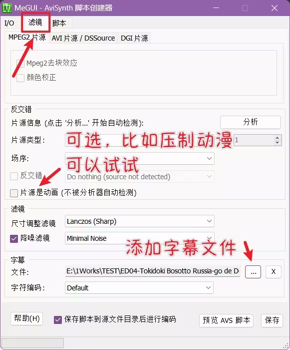 2、进入配置界面后,可以选择是否启用降噪滤镜,根据视频的具体情况决定是否开启该功能以提升画质。