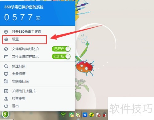 3、 右键点击360杀毒小图标,从弹出菜单选择设置选项。