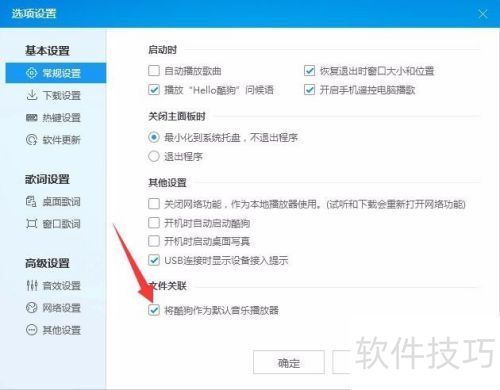 6、 将酷狗设为默认音乐播放器,如右侧图示。