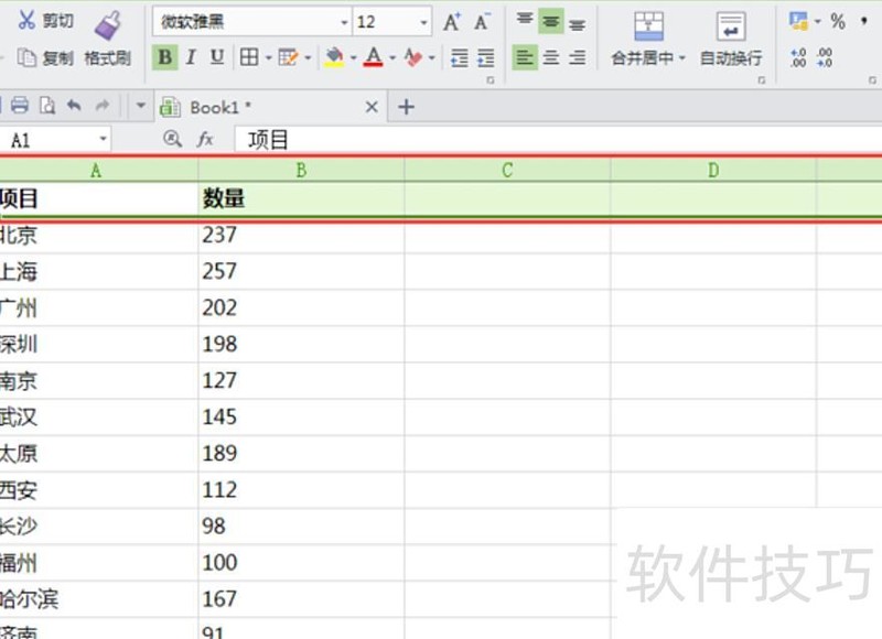 用鼠标选中第一行作为标题栏,若无标题栏建议插入一行并设置,既可标注各列数据,也便于后续排序操作。
