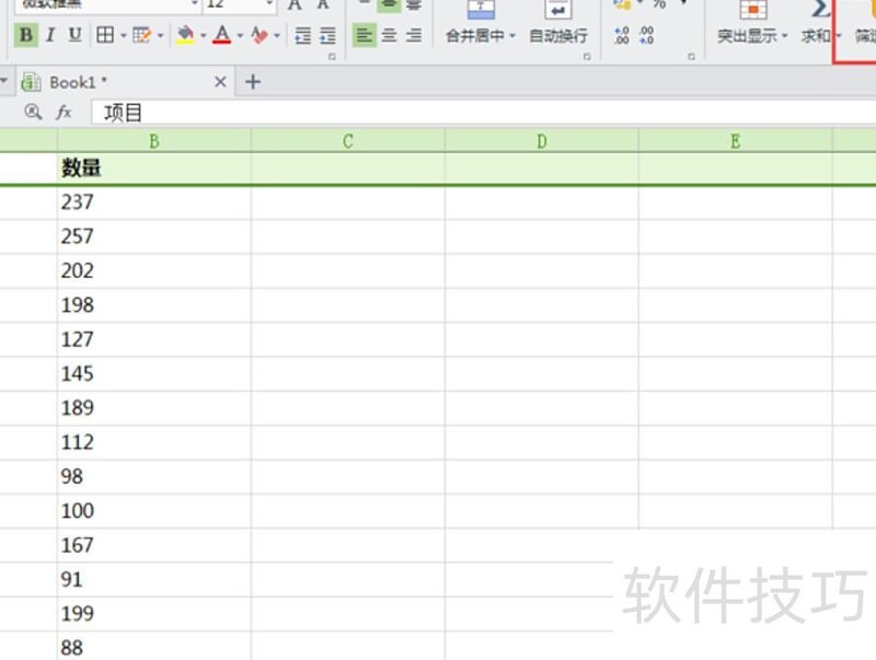 选中第一行标题后,点击开始菜单中的筛选按钮,操作所示。