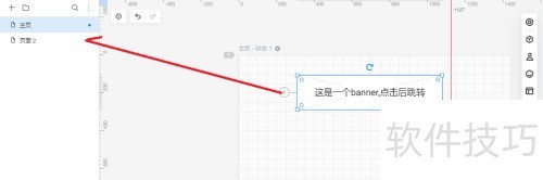 4、 将占位符组件左侧闪电手柄拖至对应页面以添加链接。