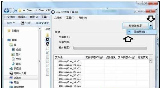 5.点击界面右侧的下拉箭头,选择同时更新 C++ 组件,能够增强 DirectX 的修复效果,提升系统性能。