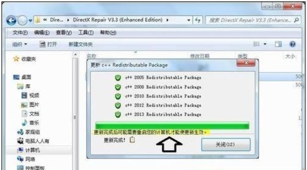 6.建议在完成动态链接库修复后重启电脑,以验证问题是否得到解决;如重启后问题依旧,可尝试更新 C++ 组件进一步排查问题根源;注意,C++ 组件更新完成后,同样需要重启电脑才能使更新生效。
