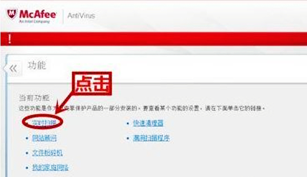 1、打开McAfee软件,点击“导航“,接着在导航中心点击“功能”按钮,在“功能”页面下,点击“实时扫描”按钮。