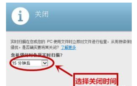 2、然后我们点击“关闭”按钮,此时会弹出来一个框,我们选择一个关闭时间,再点击”关闭”就可以了。