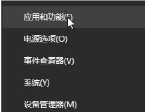 3、如果你觉得操作起来太麻烦的话还可以直接将其卸载,在Win10系统开始菜单右键,选择“应用和功能”按钮。