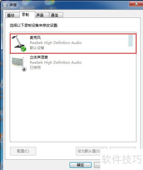 2、 点击录音设备以开启麦克风,参照图示操作。