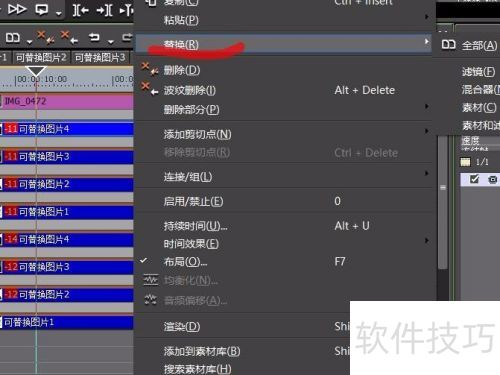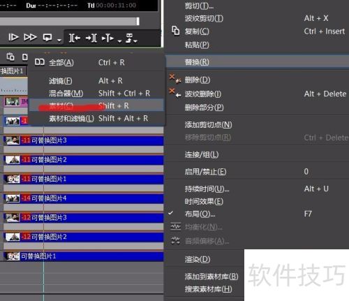 4、 返回之前制作的特效素材,右键点击,从菜单中选择替换选项。