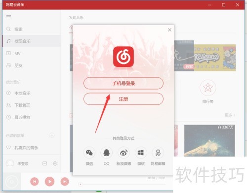 4、 请选择登录方式,进入网易云音乐账号,所示。
