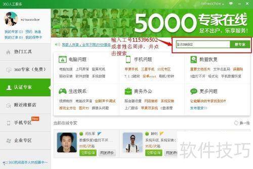 通过工号和姓名查找特定的360民间专家,可提供远程协助帮您实现: