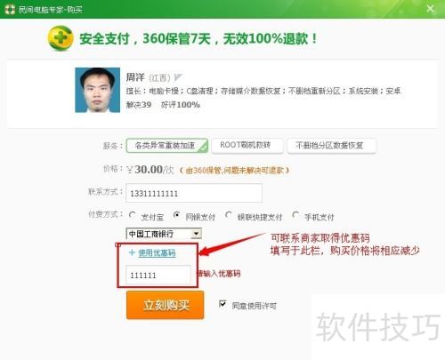 6、 选择所需服务,通过多种方式付款,填写优惠码还可享受价格折扣。