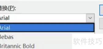 替换时选择需更改的字体,若使用多种字体,则需重复操作多次。