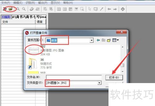 2、 单击打开文件工具,选择桌面位置,将文件格式设为jpg,命名为002.jpg,选中后点击打开按钮即可。