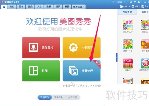 1、 在电脑上打开美图秀秀,选择安装批量处理后进入批量处理。