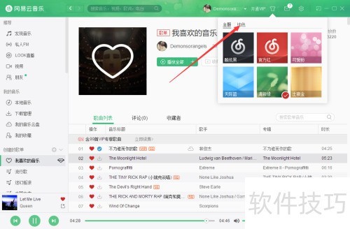 如何在网易云音乐电脑版更改客户端皮肤和颜色?