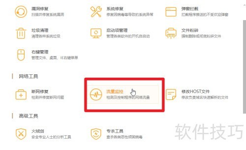 3、 第三步:于安全工具里选取流量监控功能,见下图。