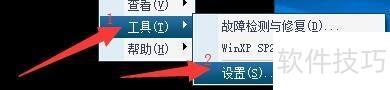 3、 在下拉菜单中选择工具,然后在右侧栏中点击设置。