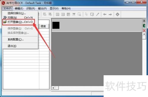 1、 运行书七号,从文件菜单下拉列表中选择打开图像。
