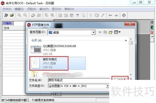 2、 从已打开的图像文件中定位目标文件,选中后点击打开按钮完成操作。