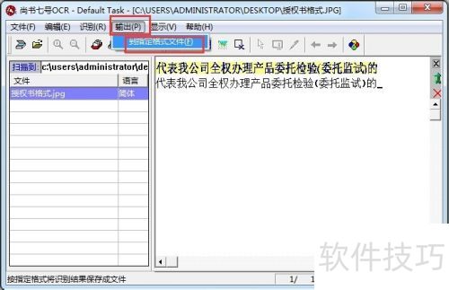 5、 识别完成后,将显示相应结果,随后点击菜单输出,导出为指定格式。