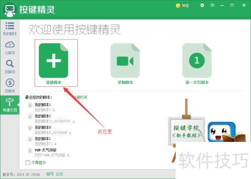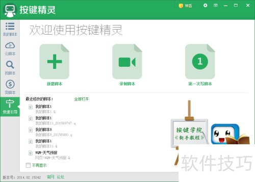 2、 打开按键精灵,打开后大体是这样(即便有差异也无妨)。