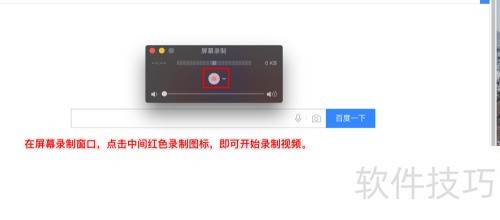 4、 在屏幕录制窗口,点击中央红色图标,即可开始视频录制。