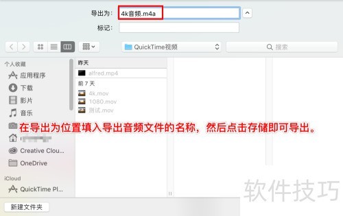 6、 在导出位置输入音频文件名,点击存储完成导出。