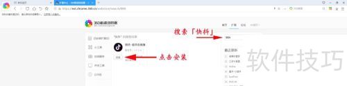 2、 360极速浏览器:点击添加扩展按钮,进入商店搜索快抖,安装完成后点击其Logo即可观看。