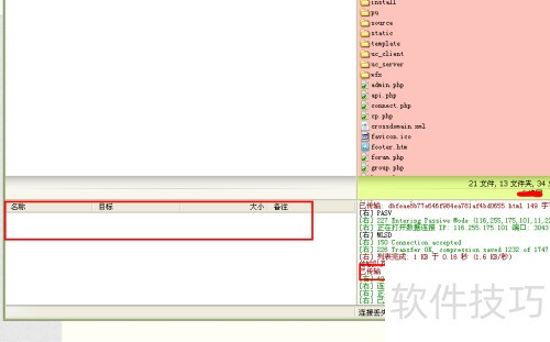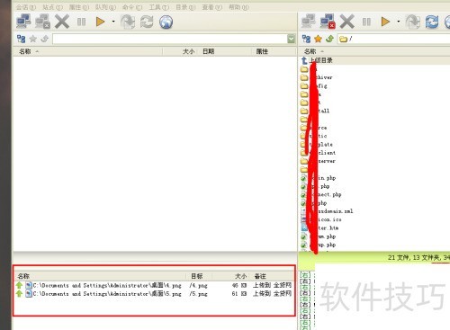 5、 确认FTP连接成功,将待上传的文件或网站程序拖入FlashFXP上传列表中即可。