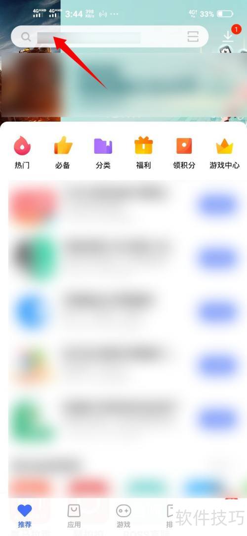 2、 在手机上开启应用商店,点按搜索框。