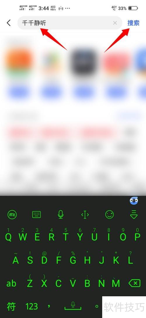 4、 在搜索框中输入千千静听进行搜索。