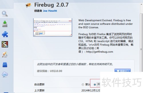6、 为确保FireBug版本最新,可设置组件自动更新。