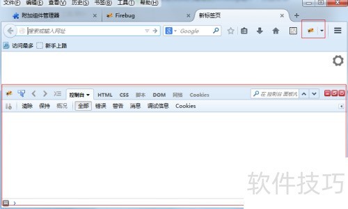 5、 安装完成后,FireBug快捷键将自动出现在火狐浏览器工具栏中。