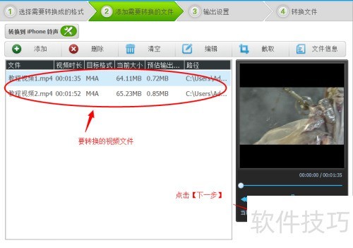 6、 文件添加完成后,点击右下角的下一步按钮继续操作。