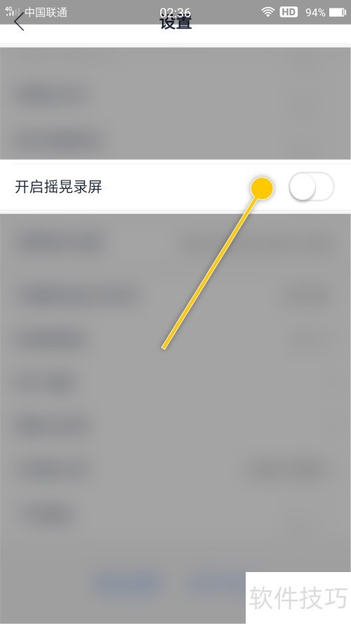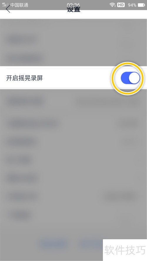 3、 勾选开启摇晃录屏,开关显示为已开启状态。