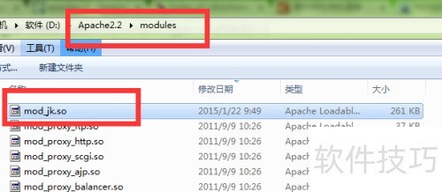 5、 手工把mod_jk - 1.2.31 - httpd - 2.2.3文件拷贝到我们Apache安装目录下的modules目录里,该文件的全称为mod_jk - 1.2.31 - httpd - 2.2.3.so,之后我把这个文件名修改成了mod_jk.so。