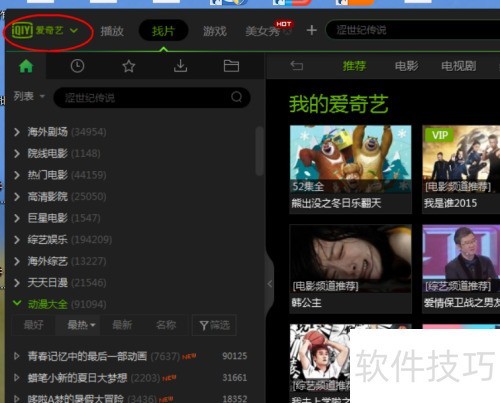 1、 打开爱奇艺PPS影音,点击左上角的按钮,进入选择程序界面。