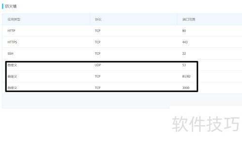 3、 为防止后期出错,先开放部分端口,如UDP 53。